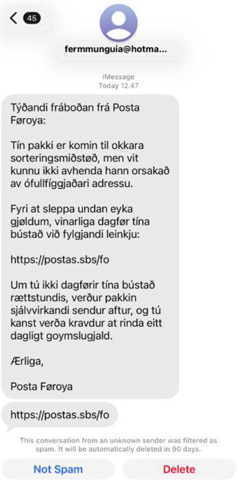 Ávaringin frá 5. februar sæst her: https://www.talgildu.fo/talgildu-foeroyar/a-breddanum/avaring-umfatandi-smishing-alop-i-foeroyum-i-loetuni