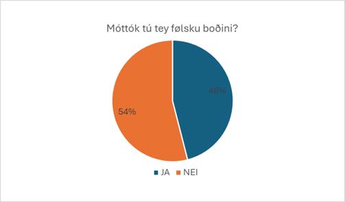 Tað vóru tískil heili 46% sum svaraðu, at tey høvdu móttikið tey følsku boðini. Hetta bendir á, at rættuliga nógv fólk hava móttikið følsku boðini.